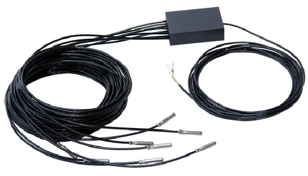 We supply measuring modules TEP-08 for measuring more temperatures. Each module contains 8 temperature sensors Pt100. The length of PUR cables is optional. It is possible to connect more